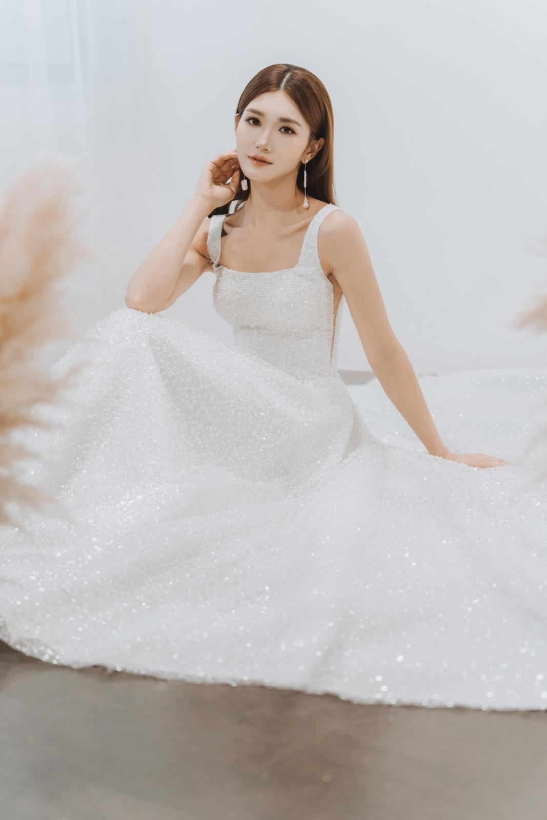 挑選過程中,我們細心聆聽她的喜好與想像,考量身形比例、膚色特質與個人風格,最終為她挑選了一款優雅高貴的緞面拖尾婚紗。它不僅完美勾勒她的體態,更展現內斂自信的氣質,彷彿為那一刻量身打造。婚禮當日,當新郎首次見到新娘時,眼眶瞬間泛紅,感動落淚。那一刻的驚喜與情感交織,成就了屬於他們的永恆記憶。能成為這段旅程中的智囊與陪伴者,我們深感榮幸,也由衷送上最誠摯的祝福。