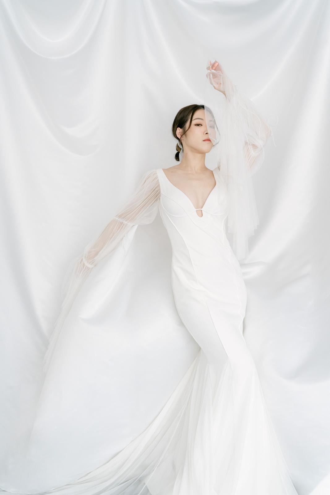 在眾多服務過的故事中,有一幕至今仍深深烙印在我們心中;一位新娘獨自前來挑選婚紗,為心愛的新郎準備一個永誌難忘的 First Look 驚喜。First Look 指的是新郎首次見到新娘穿上婚紗的瞬間,充滿期待與情感,是婚禮中最動人的篇章之一。這位新娘將驚喜保留至婚禮當日,未曾讓新郎參與婚紗挑選,只與我們的團隊分享她的心意與構想。
