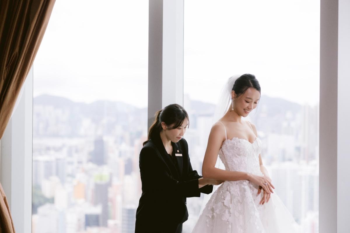 不少新人特別喜歡酒店的 Bridal Assistant 服務,尤其深受新娘子好評。婚禮畢竟是一生一次,對缺乏經驗的新人來說難免緊張,而貼心的 Assistant 會在每個細節上陪伴指導;就算是揭頭紗這些小動作,也會細心示範,讓整個流程自然而順暢。酒店內各個團隊的配合亦十分默契,從前期準備到大日子當天,新人都能體驗到由頭到尾的無縫支援。