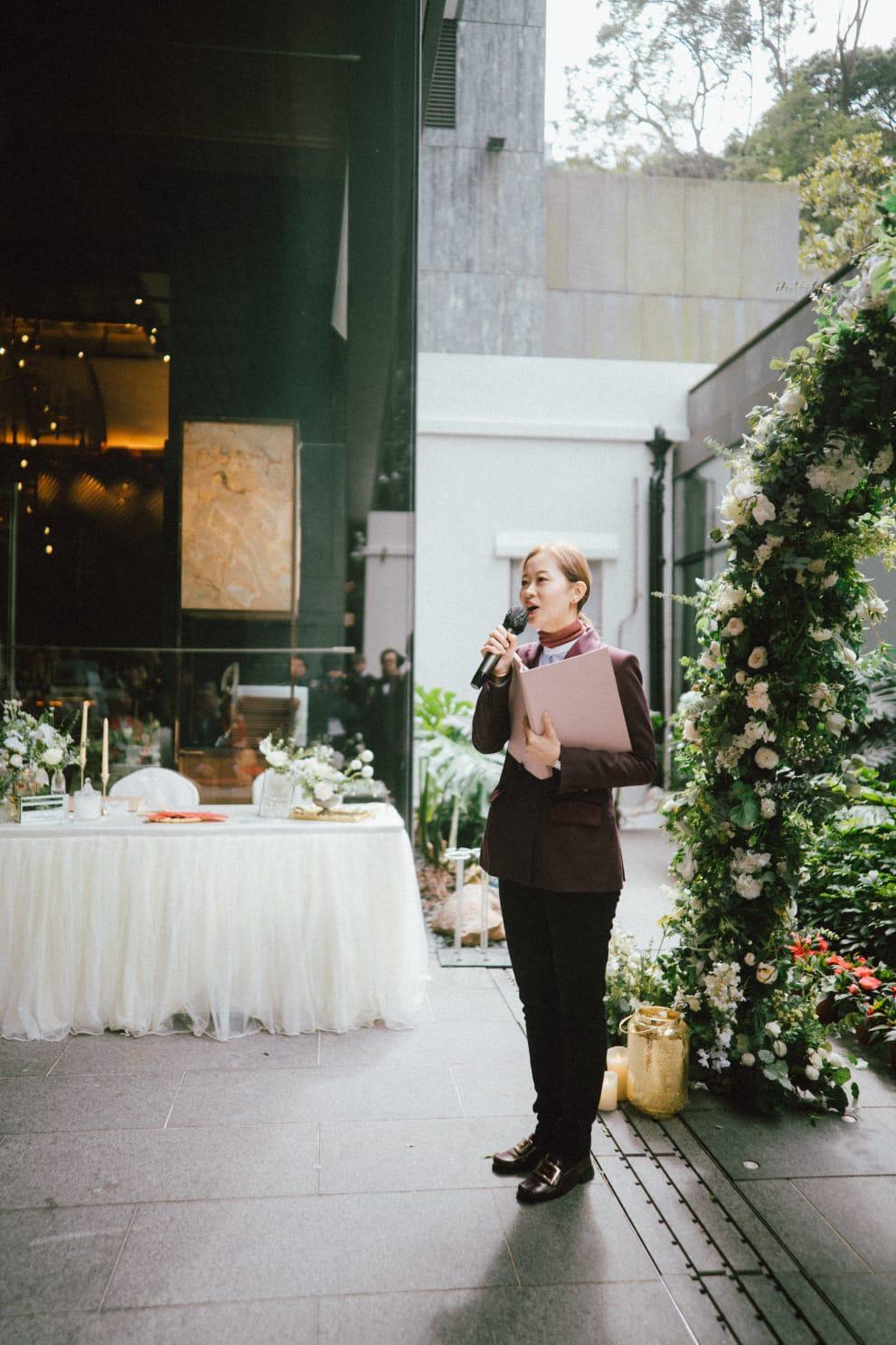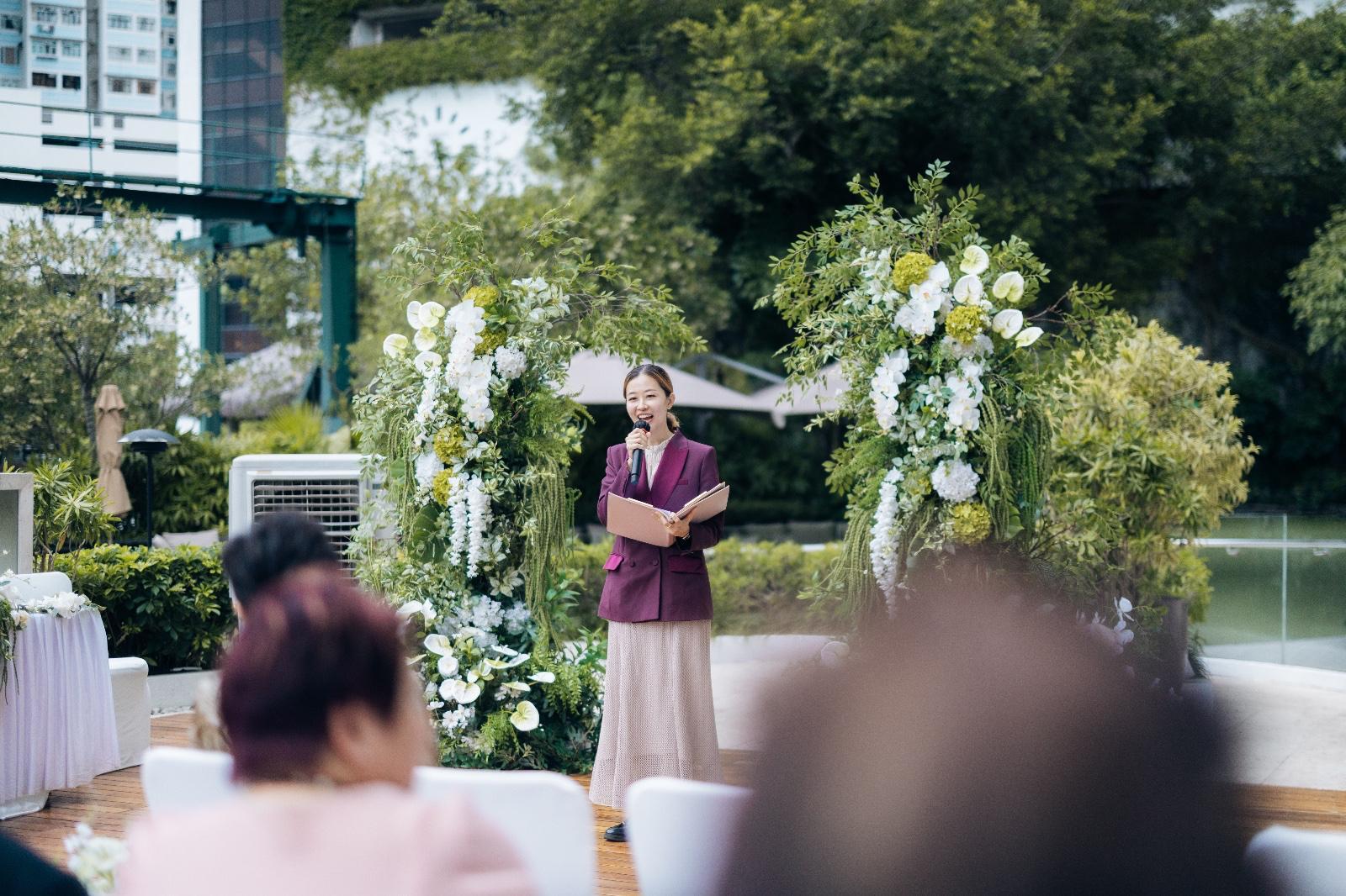 Vows & Bows 最常獲得的讚賞,來自新人對細緻用心的感受。每一場婚禮前,Jen都會與新人深入交流,了解他們的喜好與愛情故事,並仔細逐一講解證婚流程,提醒需要注意的細節,同時提供撰寫個人化誓詞的建議。籌備過程中,她始終保持與新人緊密溝通,確保任何疑問都能即時解答。為了讓新人更加安心,她更會在大日子前將講稿交予審核,確保內容準確無誤,避免出現任何意料之外的情況。